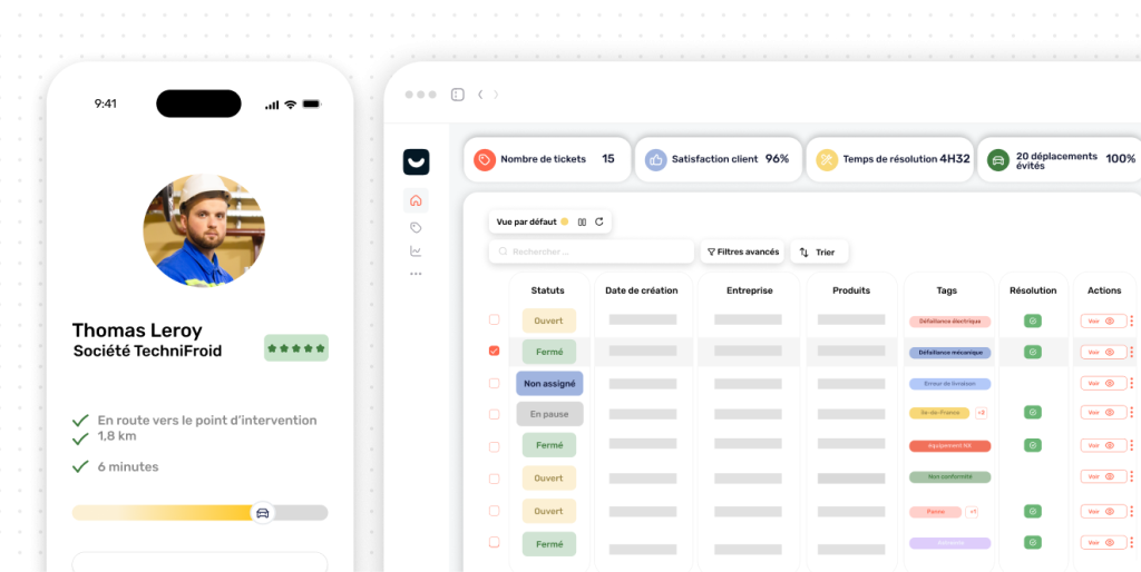 Côté bureau, l’équipe support utilise un CRM ou des emails. Côté terrain, les techniciens jonglent entre WhatsApp, papier et mémoire. L’information circule mal, les doublons se multiplient, et le responsable SAV n’a jamais la vue d’ensemble.