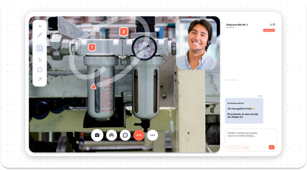 Vidéo en temps réel : votre technicien voit exactement ce que le client voit sur le terrain.