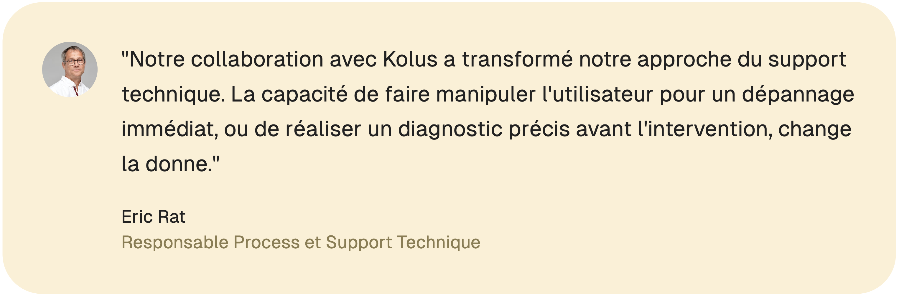 Pour relever le défi, Acces Industrie a adopté la solution de visio-assistance Kolus, après des ajustements sur mesure de l'outil. Cette collaboration a permis de mettre en place une interface simple d'utilisation, aussi bien pour les équipes internes que pour les clients finaux. Grâce à Kolus, les experts d'Acces Industrie peuvent non seulement visualiser en temps réel le matériel concerné, mais aussi écouter les bruits émis et prendre des photos en direct, enrichissant ainsi le diagnostic. Le partage fluide des informations entre le service hotline et les techniciens sur le terrain optimise les interventions et renforce l'efficacité du support technique.