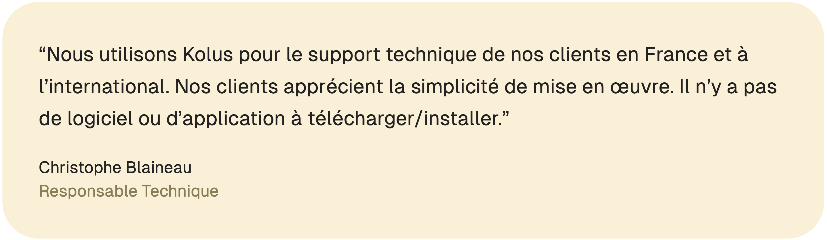 L'adoption de Kolus par Mecapack témoigne de son engagement à fournir un service client exceptionnel, en réduisant les délais d'intervention et en améliorant la qualité du diagnostic à distance. Les fonctionnalités avancées de la plateforme, telles que les annotations en direct et le partage de fichiers, enrichissent l'expérience d'assistance, permettant aux techniciens de Mecapack de guider les clients avec précision. Cette démarche s'inscrit dans la volonté de Mecapack de continuer à être à la pointe de la technologie, tout en garantissant une satisfaction client optimale.